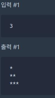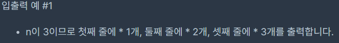 "*"의 높이와 너비를 1이라고 했을 때, "*"을 이용해 직각 이등변 삼각형을 그리려고합니다. 정수 n 이 주어지면 높이와 너비가 n 인 직각 이등변 삼각형을 출력하도록 코드를 작성해보세요.